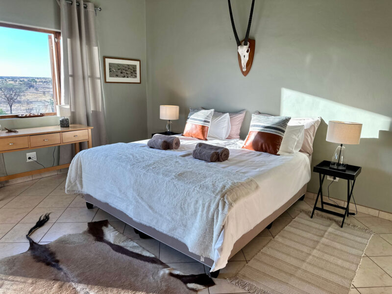 The double room provides air conditioning, a tea and coffee maker, a terrace with savanna views as well as a private bathroom featuring a shower.