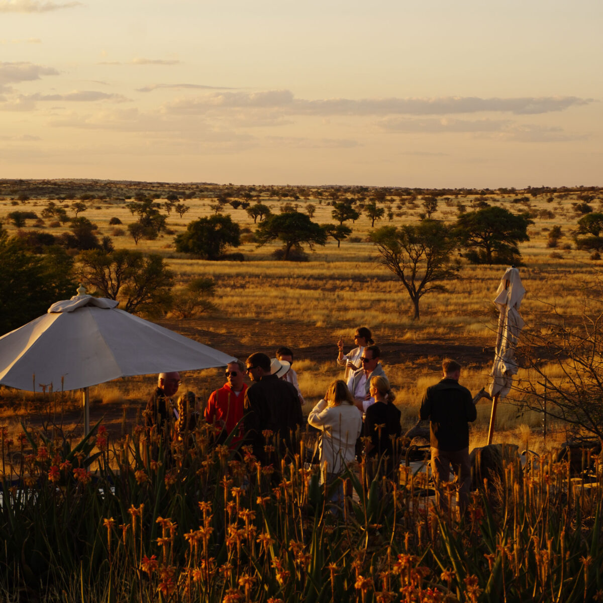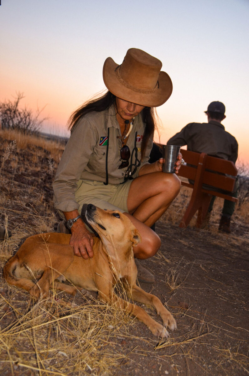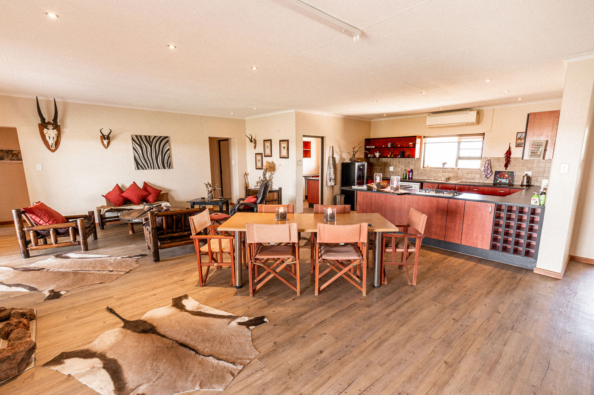 The campsite includes a bush shower with warm water heated by a traditional “donkey”, a bush toilet, and a covered cleaning area, everything needed for simple comfort in the wild.